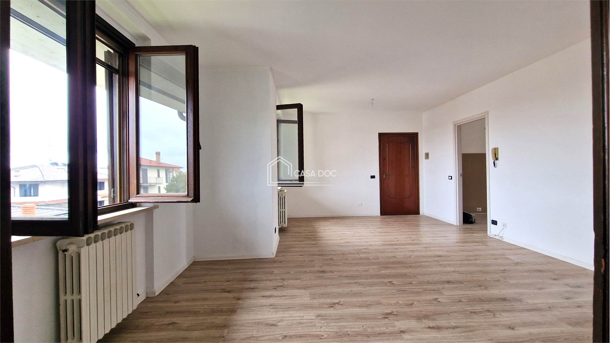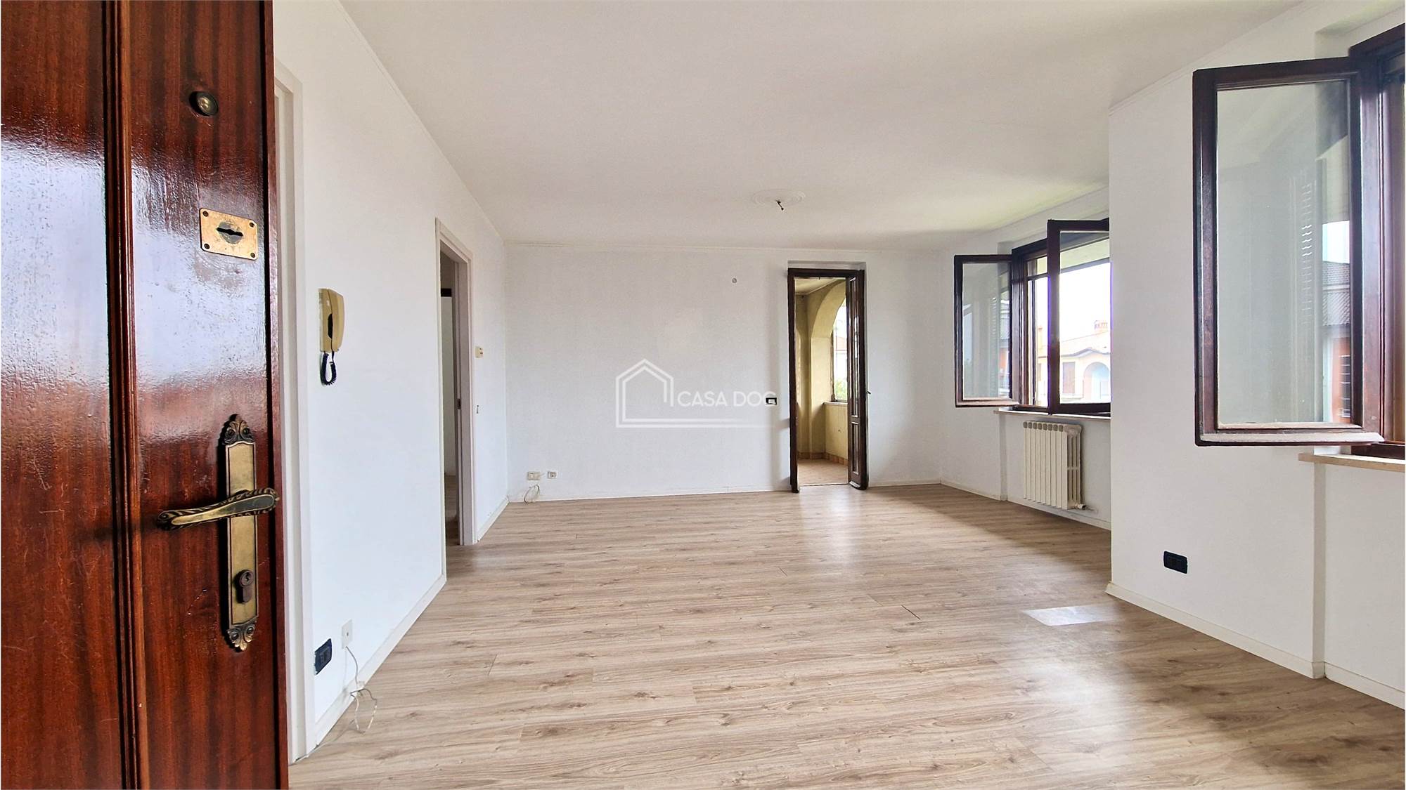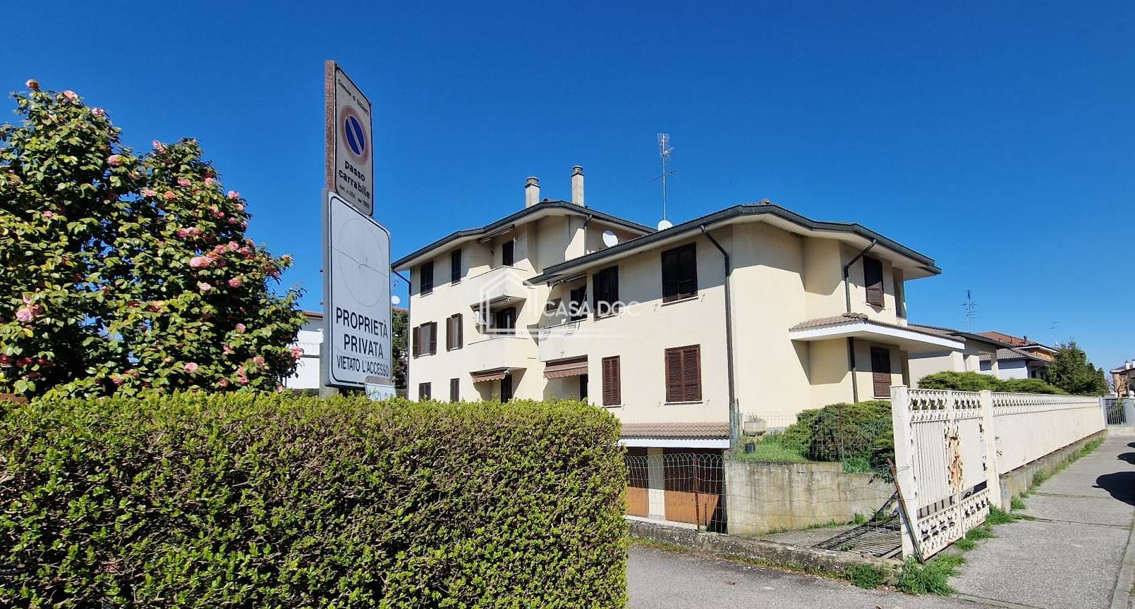 In eccellente zona al centro del paese, ampio trilocale posto all'ultimo piano di palazzina residenziale di sole 5 unità immobiliari. L'ingresso pedonale é posto sul lato della costruzione ed é abbellito da un giardino comune. Sul retro un'ampia zona box. L'appartamento é caratterizzato da ambienti grandi, ben distribuiti e molto luminosi. Ingresso nella zona giorno con un salone che affaccia su terrazzino loggiato con vista aperta; cucina abitabile con comodo balcone di servizio. Un disimpegno separa la zona notte con camera matrimoniale, cameretta e bagno con vasca. La casa gode di tripla esposizione. Al piano seminterrato box singolo. Non vi sono spese di gestione condominiale. Appartamento libero subito. La palazzina si trova in zona strategica per usufruire di tutti i servizi ed é vicinissima alle scuole.