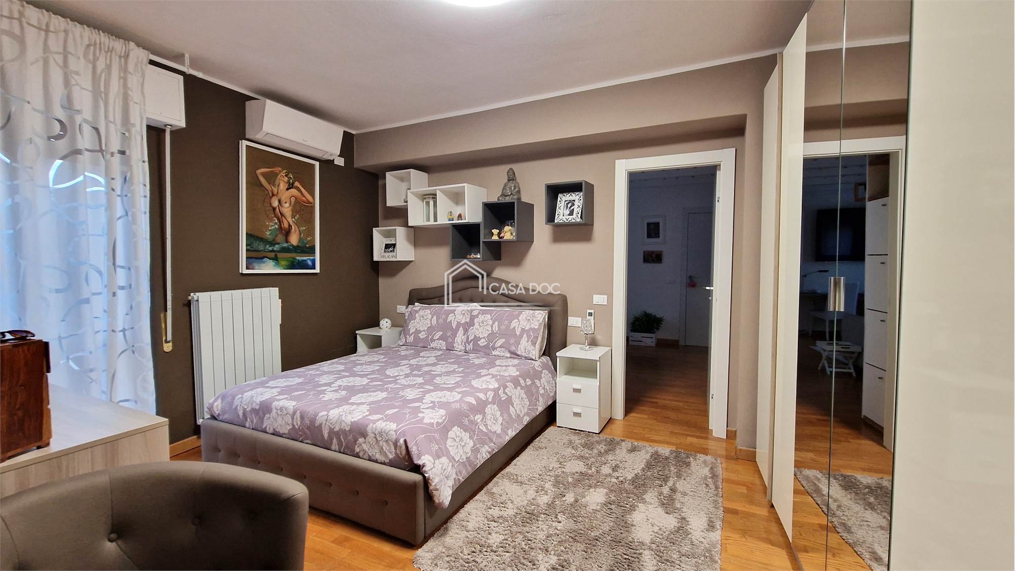 Al primo piano, la camera padronale offre un rifugio tranquillo, completa di bagno privato, mentre la camera degli ospiti, con accesso diretto al piano inferiore, garantisce privacy e comodità perfetta per dare sfogo alla tua creatività.