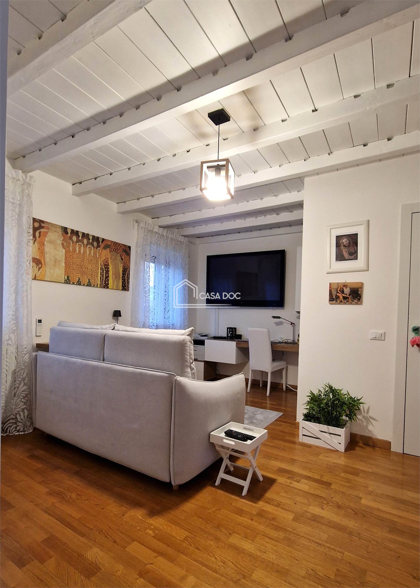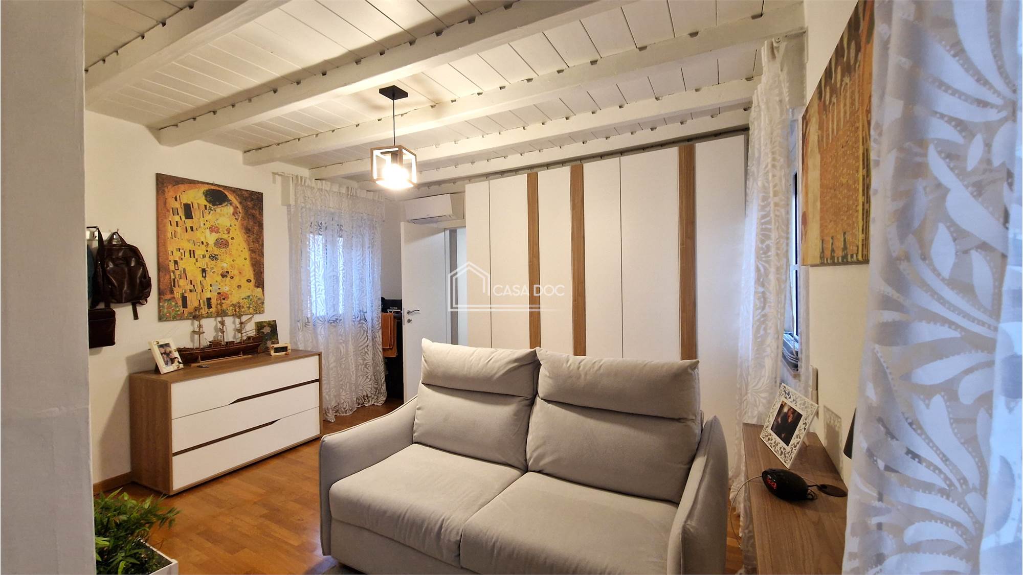 Gli interni sono caratterizzati da travi a vista e infissi di nuova generazione, che conferiscono un tocco di modernità e calore all'ambiente.