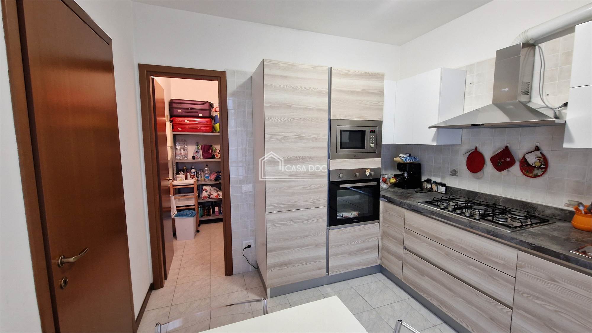 La soluzione si completa di un ampio box al piano seminterrato collegato dalla scala interna condominiale. Vi é una cantina comune ai condomini.