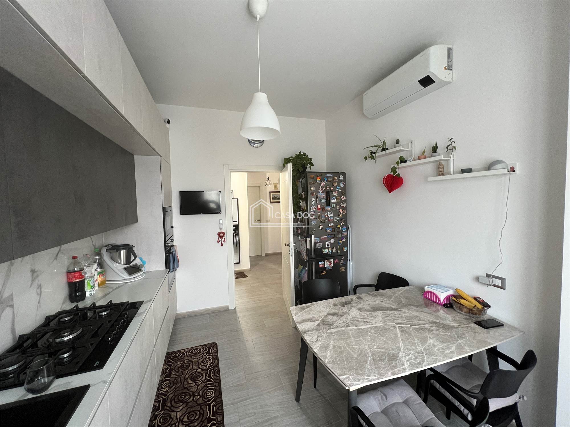 Scopri questo splendido appartamento situato in una piccola palazzina, completamente ristrutturato e pronto per essere abitato. Con una superficie ottimamente suddivisa, offre locali comodi e generose dimensioni, perfetti per ogni esigenza. L'ingresso accogliente conduce a una cucina abitabile, ideale per cene in famiglia e momenti conviviali.